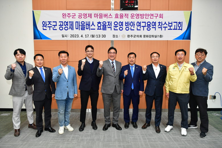 [완주=세계타임즈 = 김윤영 기자] 완주군의회 완주군 공영제 마을버스, 효율적 운행 방안 연구회(대표의원 김규성)는 17일 완주군 공영제 마을버스의 효율적 운영 방안을 모색하기 위해 연구용역을 착수했다고 밝혔다.