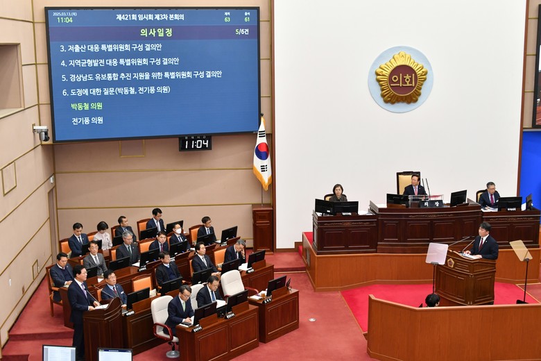 [경남 세계타임즈=최성룡 기자] 경상남도의회 기획행정위원회 소속 박동철 의원(국민의힘, 창원14)은 13일 제421회 임시회 제3차 본회의에서 “진해신항, 세계 최고의 상생형 항만을 위하여”란 주제로 도정질문을 실시했다.