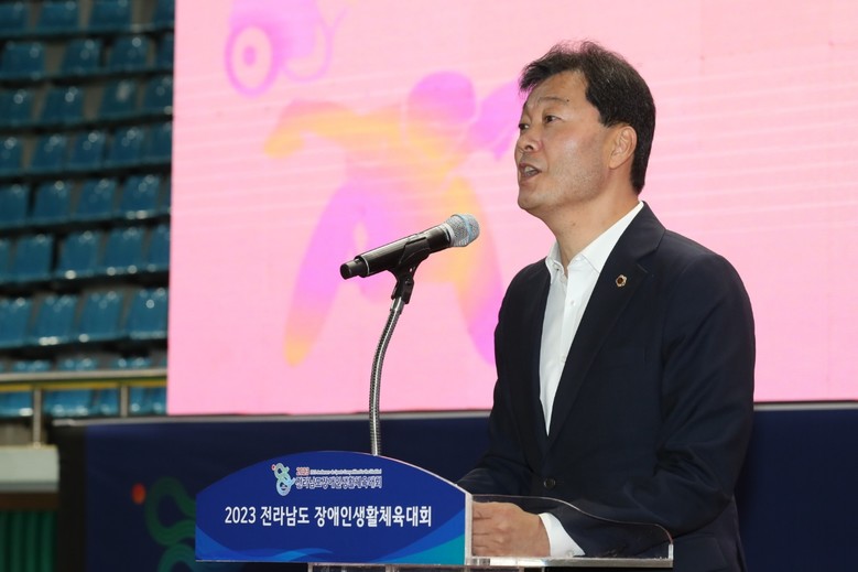 [전남 세계타임즈=우덕현 기자] 전라남도의회 서동욱 의장은 14일 순천시 팔마체육관에서 열린 2023 전라남도 장애인생활체육대회 개막식에 참석했다.