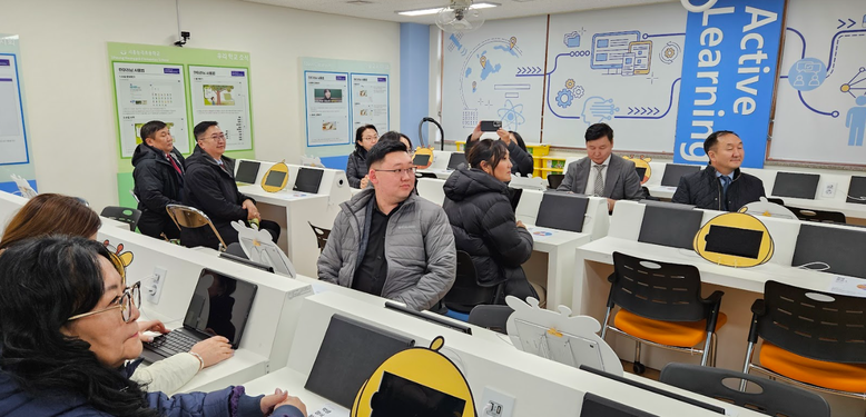 이날 방문단은 학생 맞춤형 학습을 지원하는 ‘에듀온(Edu-on)’ 교실을 중점적으로 둘러봤다. 이들은 전자칠판 등 에듀테크 기반의 다양한 교육 시설과 소프트웨어를 활용해 수업의 질을 높이는 운영 방식을 확인하며 높은 관심을 보였다. 특히 디지털 수업 환경이 실제 학교 현장에서 어떻게 구현되고, 공간이 어떻게 운영되는지에 대해 시흥능곡초 관계자들과 의견을 공유하는 시간을 가졌다.