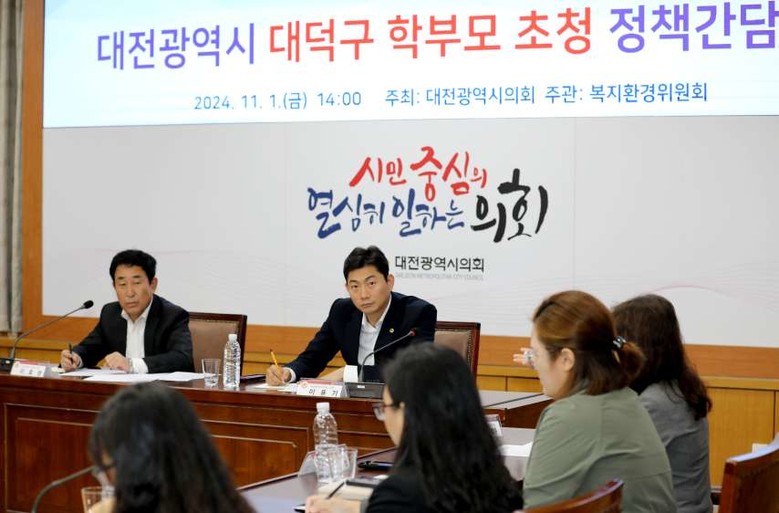 [대전 세계타임즈=이채봉 기자] 대전시의회는 1일 오후 2시 의회 소통실에서 ‘대전광역시 대덕구 학부모 초청 정책간담회’를 개최했다.