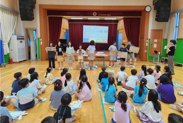 학생들은 직접 모은 우유팩과 폐건전지 새 물품으로 교환하기, 분리수거 방법 제대로 알기, 설명을 듣고 직접 분리수거 해보기, OX퀴즈 풀기 순으로 환경교육을 받았다.