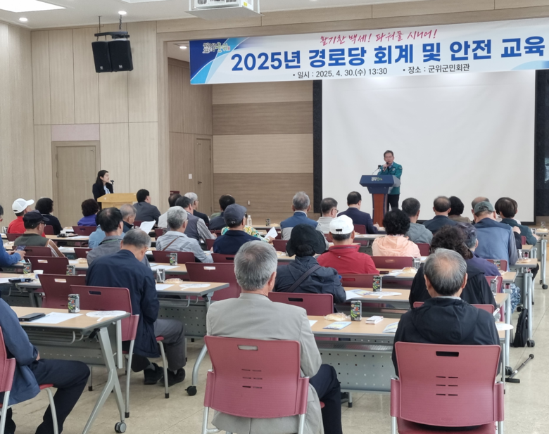 [군위군 세계타임즈=한윤석 기자] 군위군이 지난 4월 30일 경로당 총무님을 대상으로 경로당 회계 투명성 확보 및 안전 의식 강화를 위한‘2025년 경로당 회계 및 안전 교육’을 실시했다.