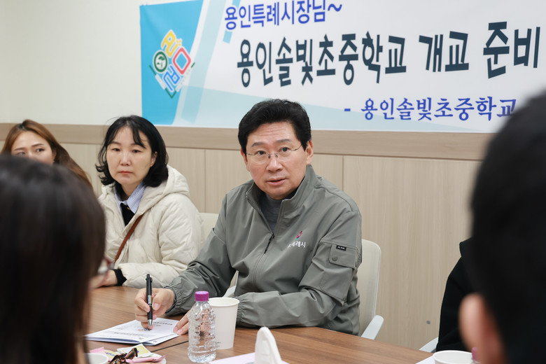 이 시장은 이날 용인솔빛초·중통합학교를 찾아 최병준 교장, 학부모 10여 명과 함께 강당과 교실 등 교내 주요 시설과 학교 주변 환경을 살폈다.