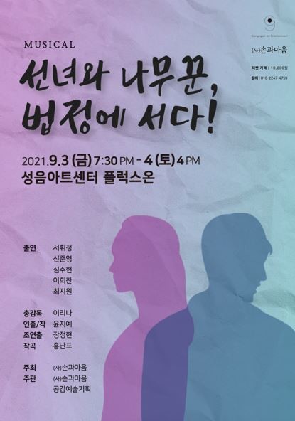 [세계타임즈 이진화 기자] 북한이탈주민(탈북민)들의 애환을 담은 이야기인 창작뮤지컬 "선녀와 나무꾼 법정에 서다"가! 오는 9월 3일~4일까지 이틀간 성음아트센터플럭스온에서 펼쳐진다.