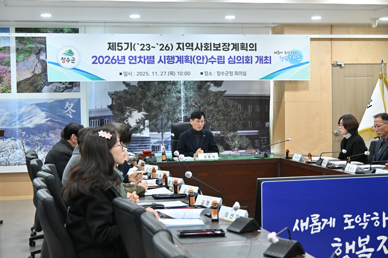 이번 심의회는 장수군지역사회보장대표협의체 위원 14명이 참석한 가운데 공공위원장인 최훈식 장수군수의 인사말을 시작으로 나금례 민간위원장의 진행 속에 제5기 지역사회보장계획의 2026년 세부추진계획 전반에 대한 논의와 심의가 이뤄졌다.