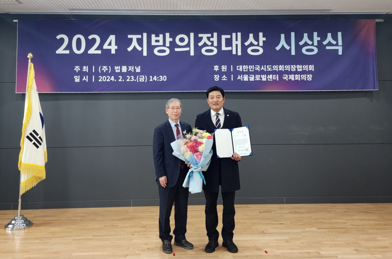 법률저널은 대한민국 공직·법조·전문직 입직에 선도적 역할을 하는 대표 언론사로 대한민국시도의회의장협의회가 후원한 2024 지방의정대상에서 지방자치분야 전문가들로 구성된 심사위원들의 심사를 통해 수상자를 선정하였다.