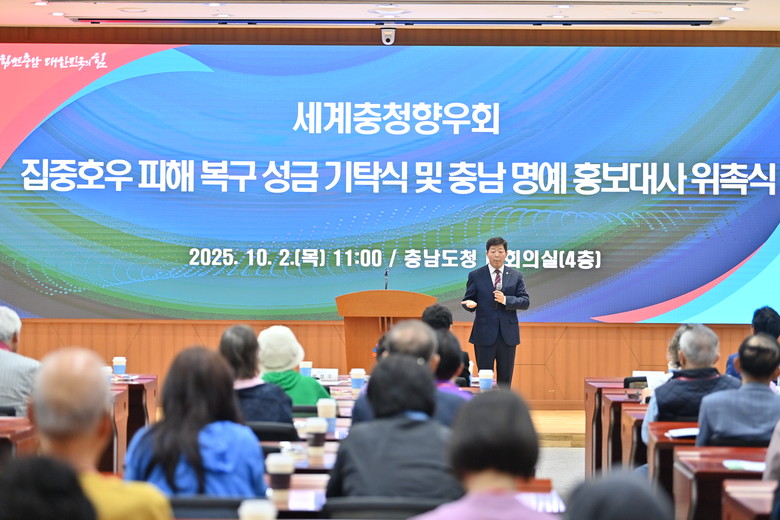 이 세계충청향우회장은 “지난해에 이어 올해도 고향 충남에 집중호우로 큰 피해가 있었던 것으로 안다. 복구에 조금이나마 힘이 되길 바란다”라며 “충남 명예 홍보대사로 위촉된 만큼 세계충청향우회 회원들과 함께 충남을 알리는 데 기여할 것”이라고 말했다.