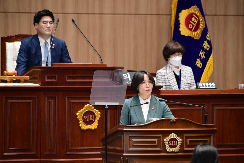 [광주 세계타임즈=손권일 기자] 광주광역시의회 이귀순 의원(더불어민주당, 광산구4)은 3일 열린 제316회 임시회 제3차 본회의에서 광주광역시가 역점으로 추진하고 있는 ‘전방·일신방직 부지 개발’과 관련된 의혹과 시민들의 보행권과 연계된 대중교통 운영 실태를 시정질문을 통해 강도 높게 지적했다.