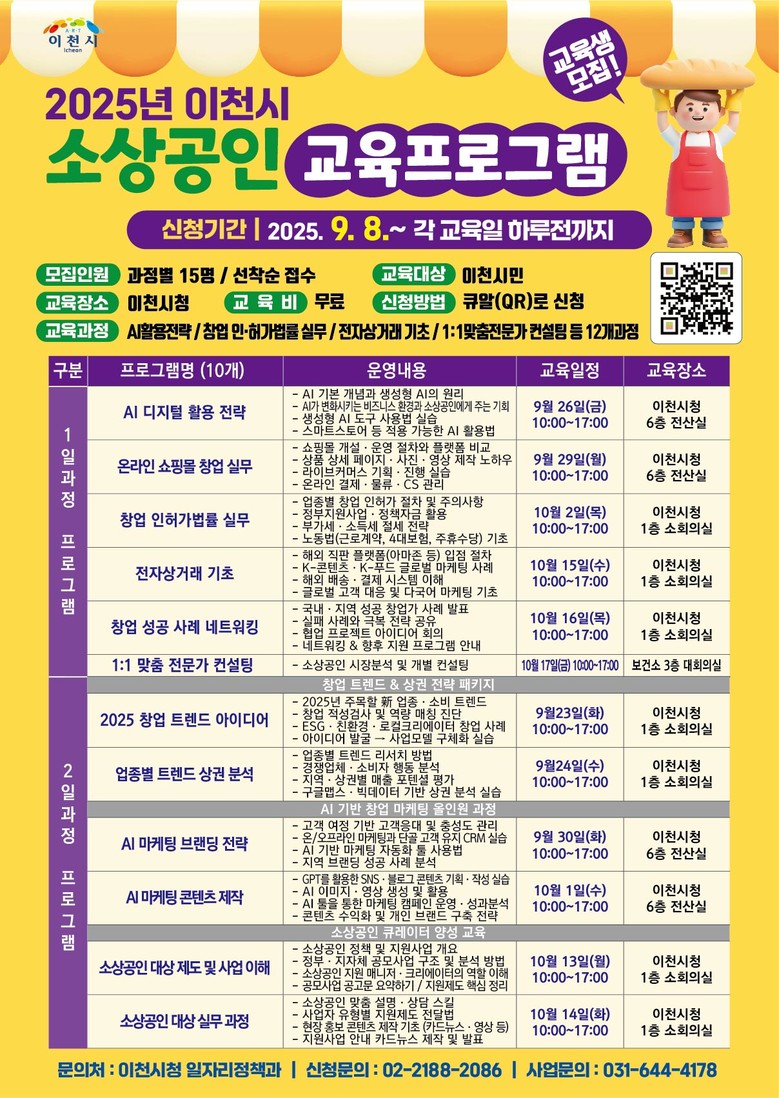 | ▲2025 하반기 소상공인 교육프로그램 교육생 모집 포스터.(사진=이천시) |