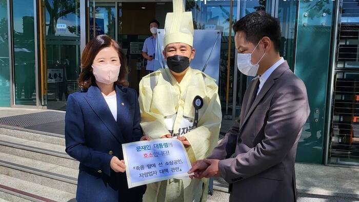 이날 전달식에는 국민의힘 약자와의동행위원회 위원장 김미애 의원이 함께 참석해 소상공인과 자영업자들의 상황을 설명하면서 문제 해결을 촉구했다.
