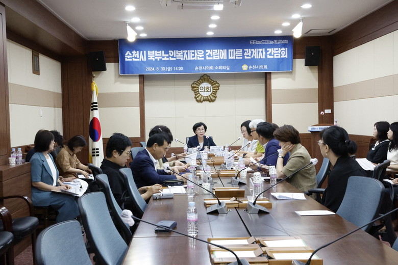 [순천시 세계타임즈=우덕현 기자] 순천시의회 행정자치위원회(위원장 장경순)는 지난 30일 순천시 북부노인복지타운 건립에 따른 시민 의견을 청취하고 발전방안을 논의하기 위하여 순천시 노인요양시설연합회 대표자들과의 간담회를 개최했다.