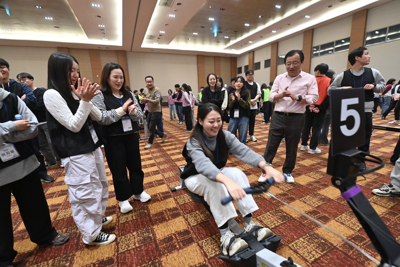 첫날 오후 열린 조직 커뮤니케이션(팀빌딩) 시간에는 ‘하남시장배 미니올림픽’이 진행됐다. 이현재 하남시장은 직접 한 팀에 합류해 직원들과 컵쌓기‧컬링‧로잉‧ 패드민턴 등 다양한 종목을 함께 즐기며 경기에 나섰다.
