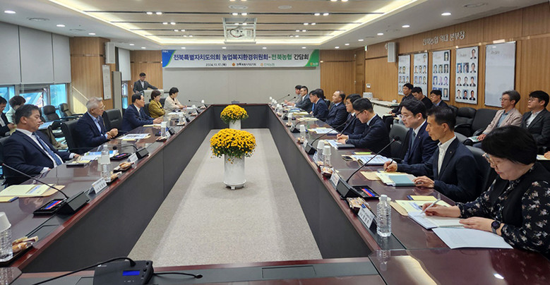 [전북특별자치도의회=세계타임즈 이상호 기자] 전북특별자치도의회 농업복지환경위원회(위원장 임승식)는 지난 17일 전북농협본부 상황실에서 전북농협(본부장 김영일)과 농업·농촌 발전을 위한 상생 간담회를 실시했다.