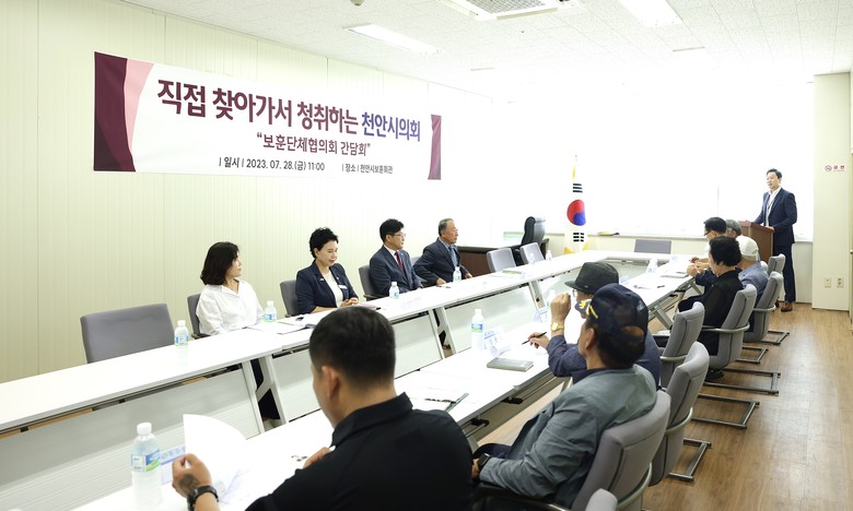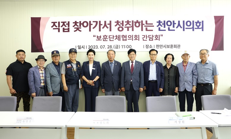 [천안시 세계타임즈=이현진 기자] 정도희 천안시의회 의장은 28일 천안시 보훈회관에서 천안시 9개 보훈단체 회장과의 간담회를 실시하였다.