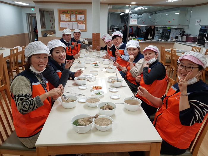 삼계탕 봉사를 총괄한 유희자 이사는 “방학기간에 아이들이 삼계탕과 닭죽을 맛있게 먹는 모습에서 행복과 보람을 느낀다.“고 말했다.