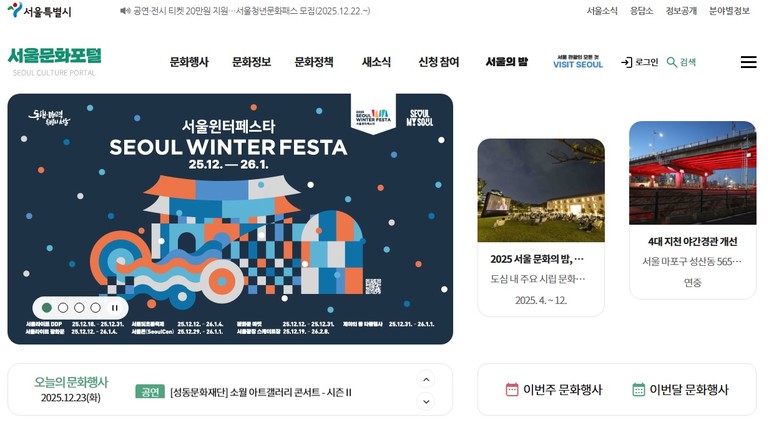 <서울시 문화행사를 한 눈에 볼 수 있는 서울문화포털 홈페이지>