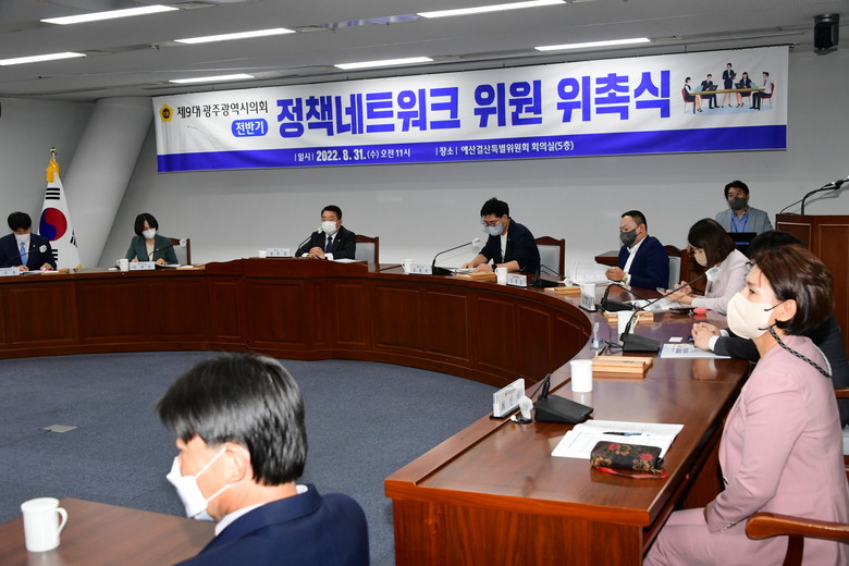 [광주 세계타임즈=손권일 기자] 광주광역시의회(의장 정무창)는 31일(수), 시의회 5층 예결위회의실에서 ‘제9대 광주광역시의회 전반기 정책네트워크 위원 위촉식’을 개최했다고 밝혔다.