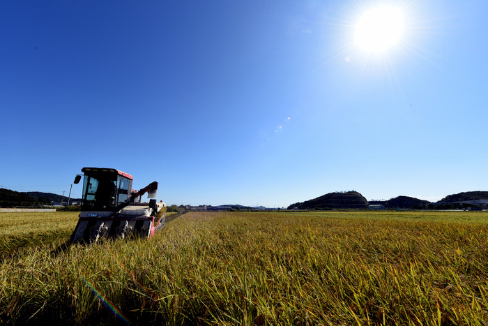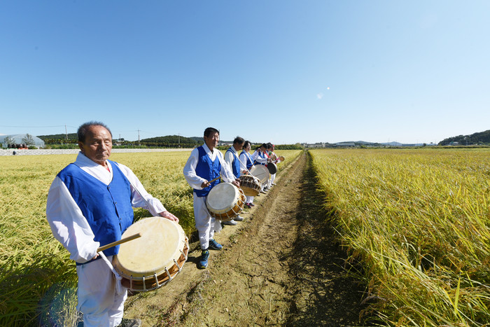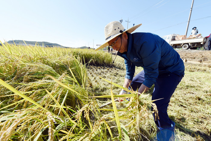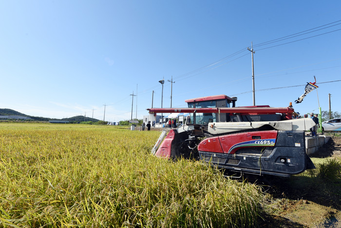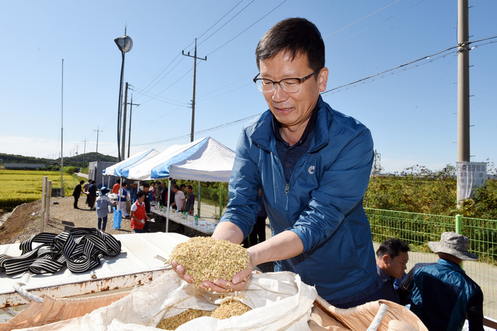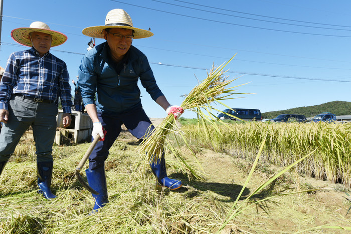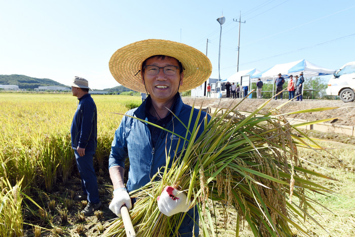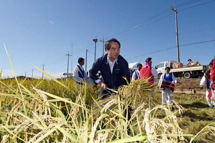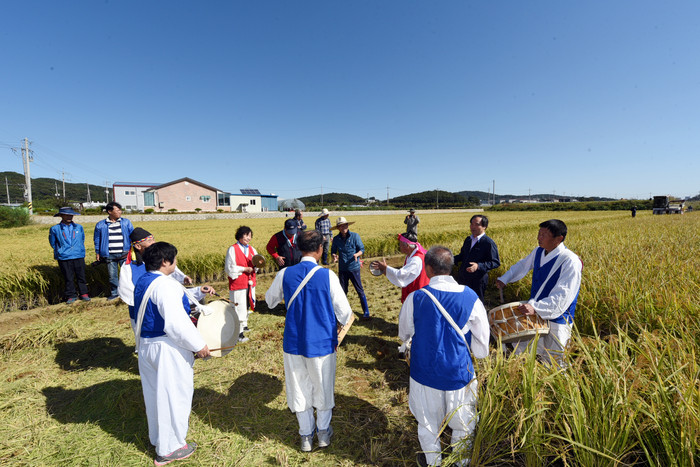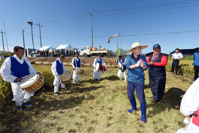 20일 오전 한국농촌지도자 김포시연합회의 공동답 벼 베기 행사가 김포시 대곶면 약암리에서 열렸다.
