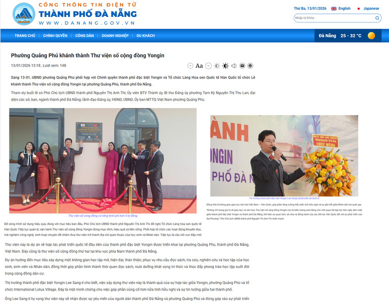 이날 공공 디지털도서관 준공식과 이상일 용인특례시장의 공식 방문 내용은 베트남 다낭시 공식 홈페이지에도 소개됐다.