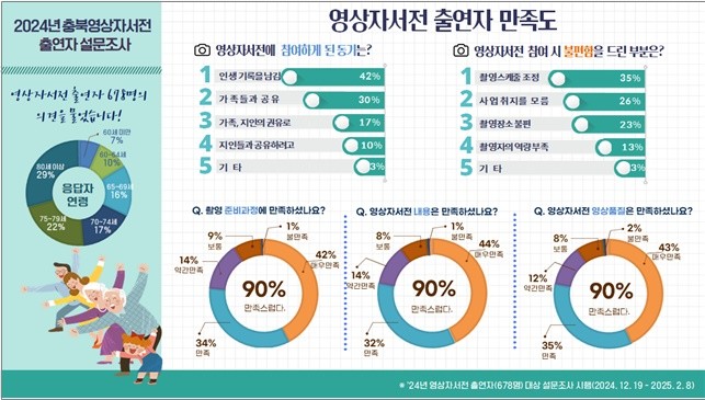 출연자 대상 설문 조사에는 출연자 9,533명 중 7.1%인 678명이 참여했으며, 출연을 결심하게 된 계기를 묻는 질문에 ‘인생의 기록을 남기기 위해’ 42%, ‘가족이나 지인과 공유하기 위해서’ 40% 순으로 답변했다. 출연 과정에서 불편했던 점으로는 ‘촬영 스케줄’ 35%, ‘사업의 취지를 잘 모르겠음’ 26%, ‘촬영 장소 불편’ 23% 순으로 답변하여 사업 취지와 목적에 대한 충분한 설명이 필요한 것으로 조사되었다.