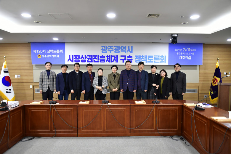 정책토론회 좌장은 신수정 의장이 맡았으며, 임진 전)경기도 시장상권진흥원장의 발제와 김재복 전)1918송정역시장 상인회 대표, 전영복 광주광역시 경제정책과장, 홍석기 광주 서구소상공인경영지원센터장 등이 토론자로 참여했다.