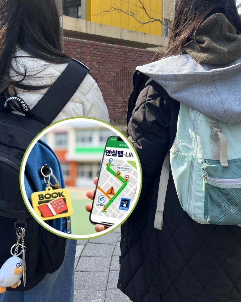 안심맵(MAP)-LINK 키링은 학생 가방에 걸 수 있는 친환경 업사이클링 소재의 열쇠고리로 NFC(근거리 무선통신) 칩이 내장되어 있다. 스마트폰을 키링에 가까이 대면 ▲보고(통학로 안심지도) ▲듣고(교통안전 노래) ▲실천(요일별 안전실천문구)이 즉시 실행되는 서비스다. 별도 앱 설치·회원가입·비용없이 누구나 사용할 수 있으며, 키링 내에는 학생 개인정보가 일절 저장되지 않는다.