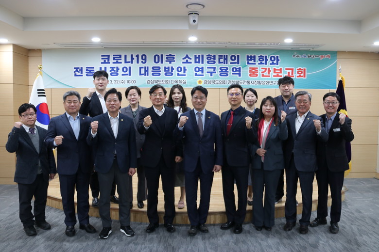 [경북 세계타임즈=한성국 기자] 경북도의회 의원연구단체인「경상북도전통시장활성화연구회」(대표 배진석 의원, 경주)는 22일 도의회 다목적실에서 ‘코로나19 이후 소비형태의 변화와 전통시장의 대응방안 연구용역’ 중간보고회를 개최했다.