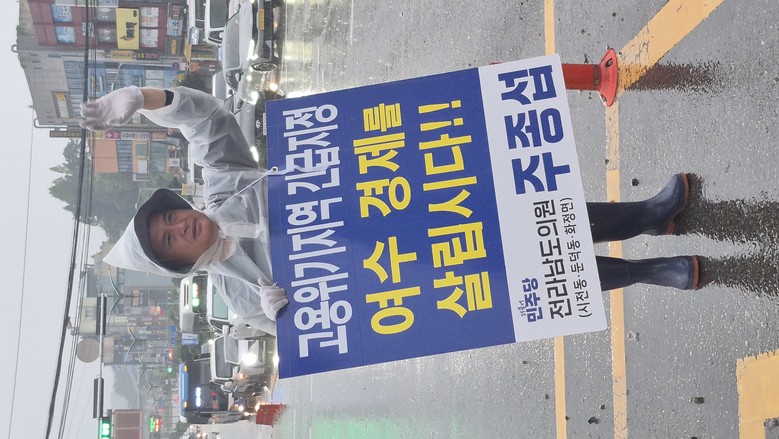 또한 지난 7월부터는 매일 아침 출근시간을 이용해, 여수 쌍봉사거리 일대에서 고용위기지역 지정을 촉구하는 1인 시위를 두 달째 진행 중이다.