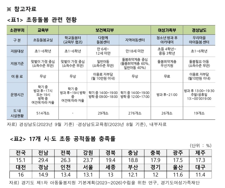 또한 “지역별 수요와 여건을 고려한 탄력적 운영이 가능해야한다”고 밝히면서, 돌봄 서비스의 통합적 지원을 위한 컨트롤타워로서 ‘경상남도 아동돌봄 통합지원센터’설립을 촉구했다.