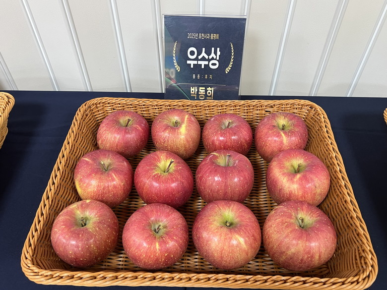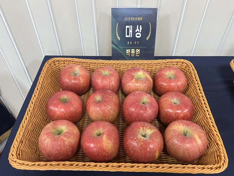 ‘2025년 포천사과 품평회’는 포천사과영농조합법인이 주관하고 포천시농업재단이 주최하여 진행됐으며, 심사는 당도와 과중, 경도, 모양, 균일도, 착색 정도, 맛 등을 종합적으로 평가했다.