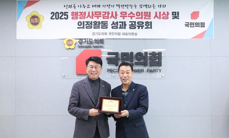 [경기도 세계타임즈=송민수 기자] 경기도의회 안전행정위원회 윤성근 부위원장(국민의힘, 평택4)은 12월 12일 국민의힘 회의실에서 열린 ‘2025년 행정사무감사 우수의원’ 시상식에서 소방재난본부와 인권담당관 등을 대상으로 한 책임 있는 질의와 정책 대안 제시 공로를 인정받아 우수의원으로 선정됐다.