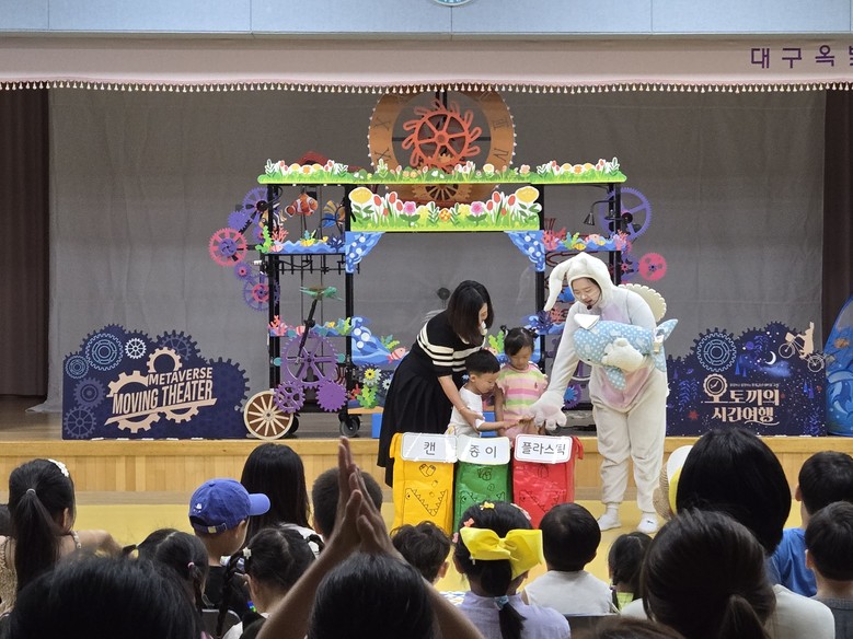 먼저, 8월 14일(수)에 진행된 오토끼의 시간여행 ‘푸른 고래 이야기’ 뮤지컬 관람을 통해 유아들이 환경오염의 심각성을 깨닫고, 환경보호를 위한 실천 동기를 부여함으로써 일상생활 속에서 분리배출을 실천할 수 있도록 하였다.