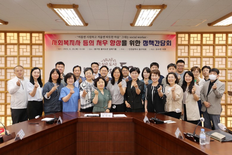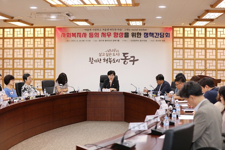[동구 세계타임즈=심하린 기자] 인천 동구의회(의장 유옥분)는 지난 29일 동구청 물치도관 갈매기홀에서 오수연 의원 주관으로 사회복지 종사자 처우 개선방안 모색을 위한 정책간담회를 개최했다.