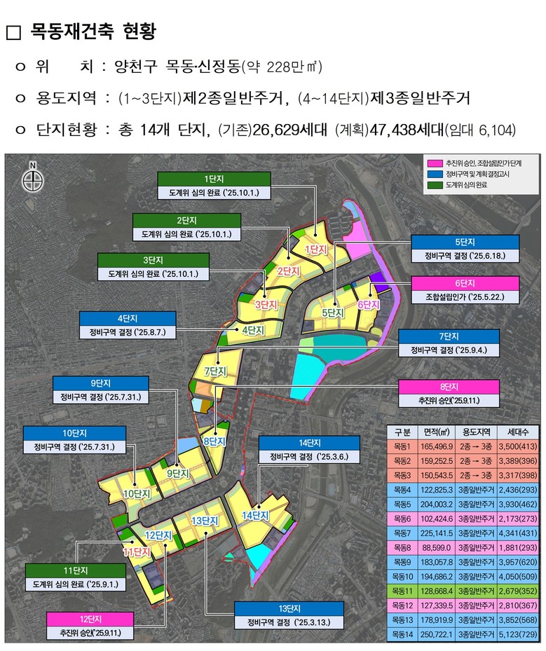 목동 14개 단지가 동시에 재건축을 추진하면서, 주민들의 강한 의지로 단기간에 65% 이상의 동의율을 확보했다. 시가 추진한 제도개선에 발맞춘 자치구의 적극적인 공공지원, 시의회와의 협력, 시‧구 협업 공정관리가 맞물려 사업기간 단축의 원동력이 되고 있다.