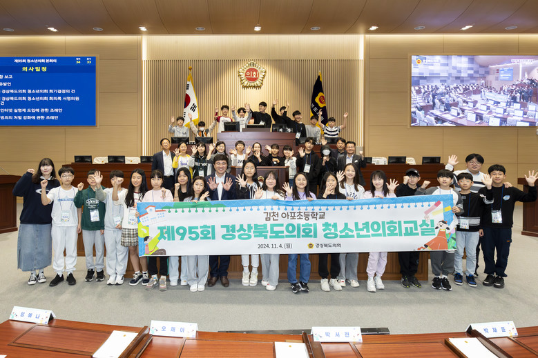 [경북 세계타임즈=한윤석 기자] 경상북도의회(의장 박성만)는 11월 4일(월) 본회의장에서 김천 아포초등학교 학생 34명이 참여한 가운데『제95회 경상북도의회 청소년의회교실』을 개최했다.