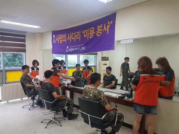 이날 미용봉사에는 송남석 단장을 비롯해서 김현옥, 이하영, 조선옥, 조은숙 가위천사들이 군장병 50명에게 미용봉사를 하였다.
