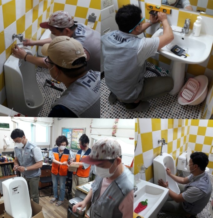 이날 봉사는 한샘 시공 협력업체인 ㈜충청바스테크의 후원으로 노후된 소변기, 온수기 점검, 화장실 컵 받침대 설치를 하였다.
