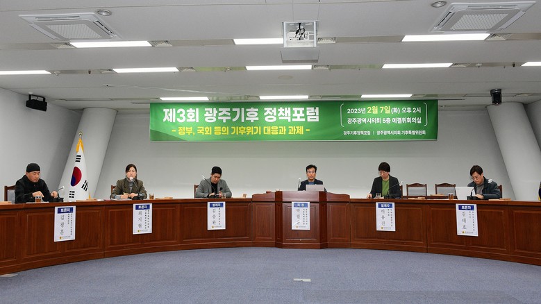 [광주 세계타임즈=손권일 기자] 광주시의회 기후특별위원회(위원장:박필순/더불어민주당.광산구3)는 7일 광주시의회 예결위 회의실에서 제3차 광주기후정책포럼을 개최했다고 밝혔다.