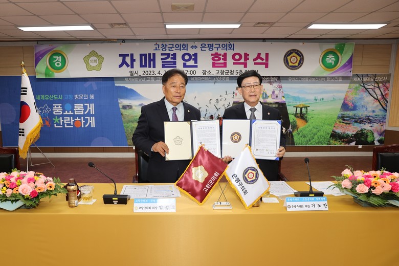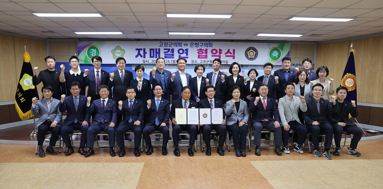[고창군 세계타임즈 = 강옥선 기자] 고창군의회(의장 임정호)는 은평구의회(의장 기노만)와 24일 군청 5층 대회의실에서 자매결연 협약식을 가졌다.