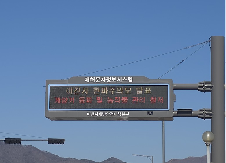 [이천시 세계타임즈=송민수 기자] 이천시(시장 김경희)는 지난 2일 2025년 겨울철 첫 한파특보가 발표됨에 따라 시민 피해 예방과 신속한 대응을 위해 한파 전담반(T/F)를 운영한다고 밝혔다,