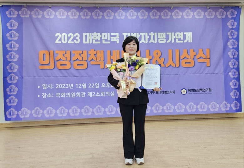 배의원은 “지역소멸 대응, 여성기업 활성화 등의 현안 문제 뿐만 아니라 시민을 위한 지역 맞춤형 의정활동을 통해 지역사회 발전 및 지방자치 활성화와 시민 행복 증진에 힘썼다. 앞으로도 시민의 목소리를 항상 마음에 새기고 의정활동에 열심히 임하겠다”고 수상소감을 밝혔다.