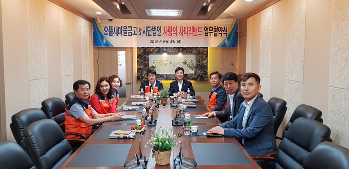 으뜸새마을금고 이희각 이사장은 “오늘 사랑의 사다리 밴드 봉사단체와 업무협약으로 지역 어르신들과, 저소득층 가정을 위해서 양 기관이 서로 상생하여 어려운 이웃을 위해서 최선을 다하겠다.“고 말했다