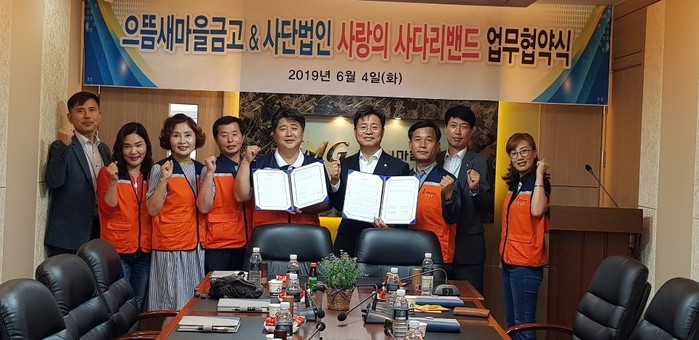 이날 업무협약식에는 사랑의 사다리 밴드 리더 이정제, 김호현 이사, 유희자 이사, 오세은 운영위원장, 문정하 부단장, 강은정 회원국장과 으뜸새마을금고 이희각 이사장, 송치호 전무, 김영선 상무가 참석을 하였다.