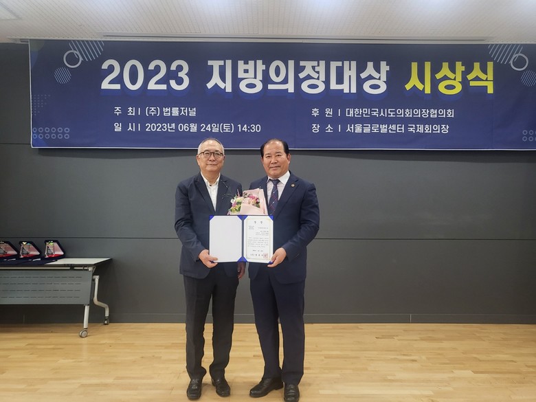 이번 2023 지방의정대상은 ㈜법률저널에서 주최하고 대한민국시도의회의장협의회가 후원한 행사로 지방자치발전에 기여하고 우수한 의정활동을 펼친 지방의회 의원 및 의원 연구단체를 심사·선정 하였으며, 경남관광산업연구회는 그 중 정책연구부문에서 선정되는 영예를 안았다.