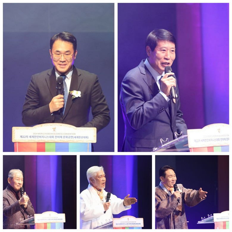 1.21일 한국 전통문화전당에서 제22차 세계 한인 비즈니스 대회 전야제에서 축사하는 HWPL 전북지부 최중일 명예이사장(상단 좌측)