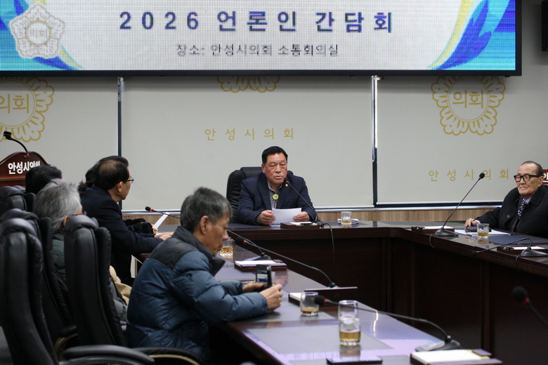 [안성 세계타임즈 = 송민수 기자] 안성시의회 안정열 의장은 2026년 병오년(丙午年) 새해를 맞아 9일 안성시 기자협회(회장 박금용) 소속 언론인들과 의회 소통회의실에서 간담회를 열고, 지난 의정 활동 성과와 향후 의회 운영 방향, 안성시의 주요 현안에 대한 견해를 밝혔다.