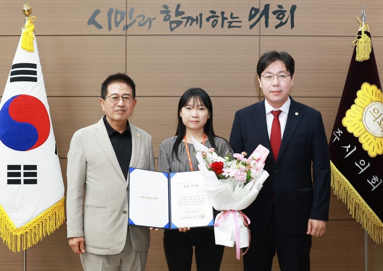[광주시 세계타임즈=송민수 기자] 광주시의회(의장 허경행)는 30일, 광주시의회 9월 칭찬공무원으로 도시개발과 도시개발팀의 주무관을 선정하여 의장실에서 증서를 수여했다.