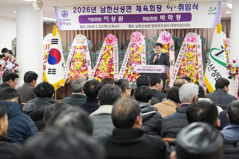 [광주시 세계타임즈=송민수 기자] 광주시 남한산성면 체육회는 지난 20일 남한산성면 행정복지센터에서 ‘2026년 남한산성면 체육회장 이·취임식’을 개최했다.