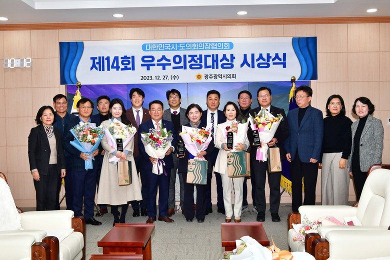 [광주 세계타임즈=손권일 기자] 광주광역시의회는 27일(수) 시의회 열린시민홀에서 ‘제14회 우수의정대상’ 수상 의원(김용임, 박미정, 박희율, 안평환, 채은지) 시상식을 개최했다.